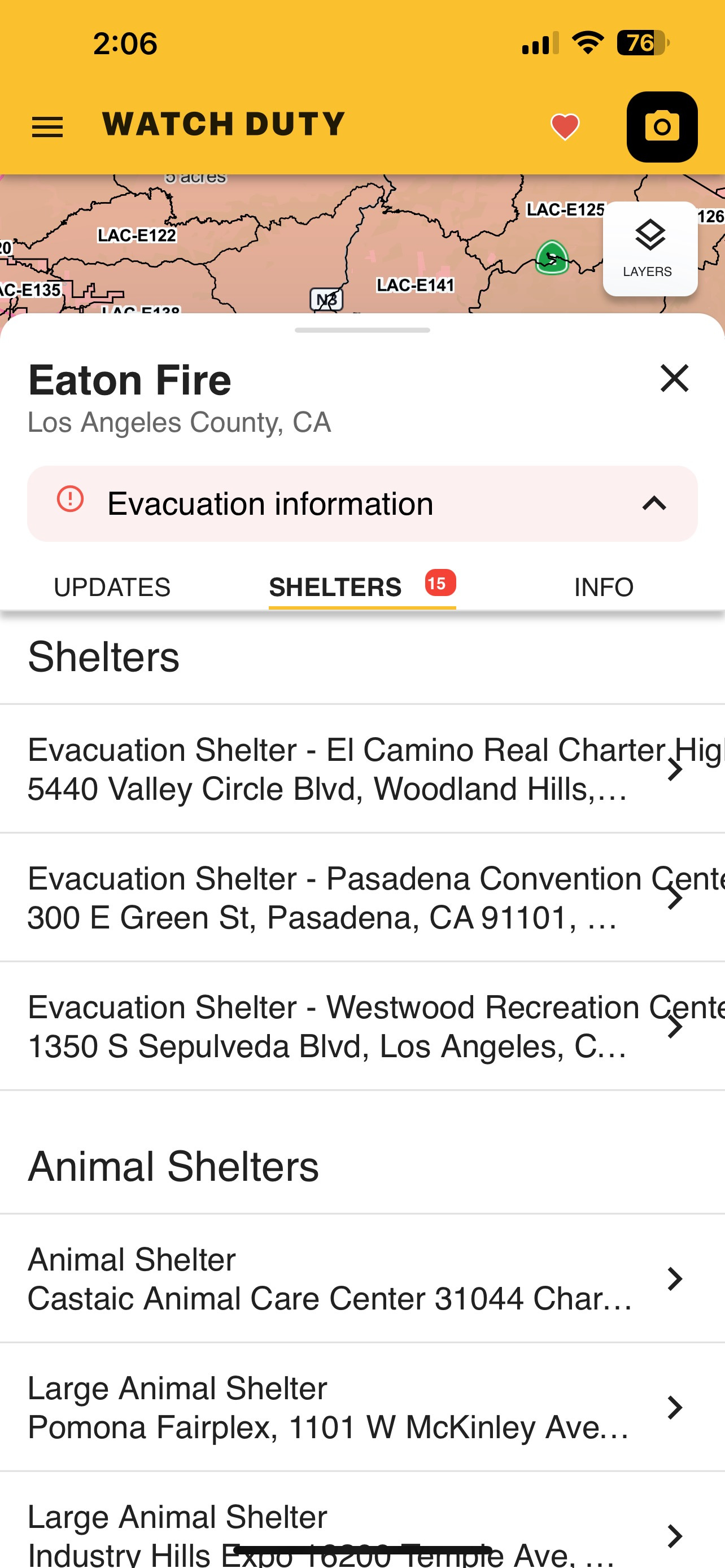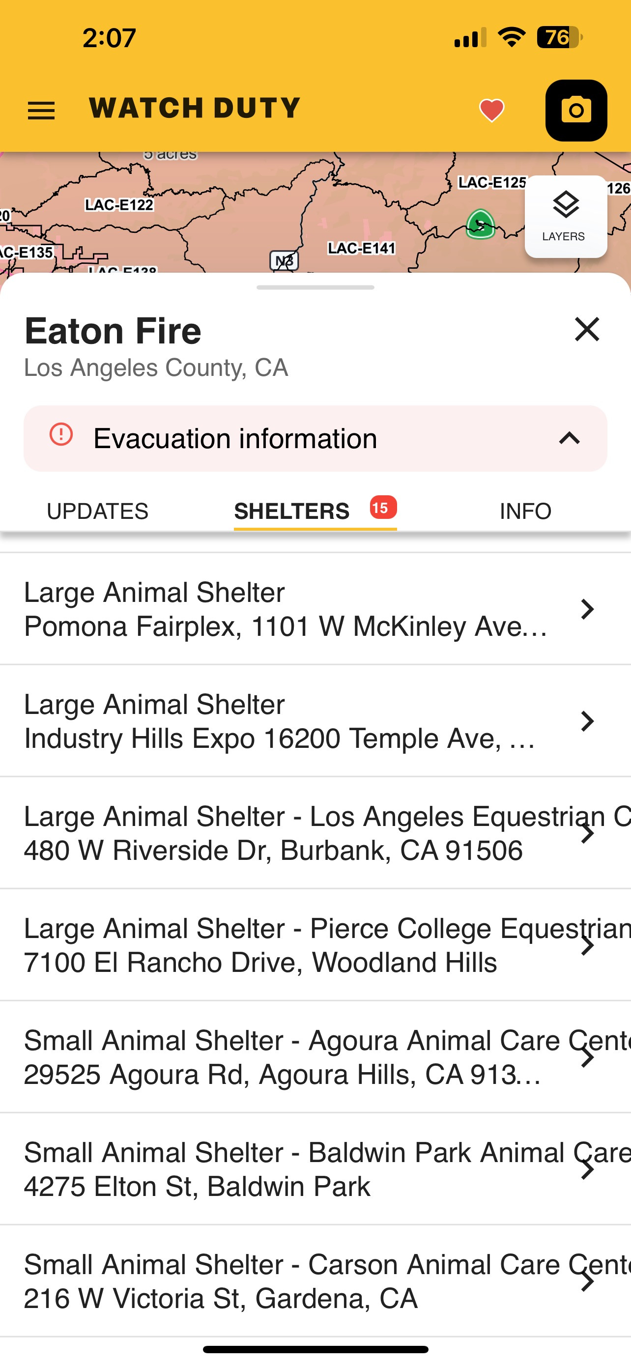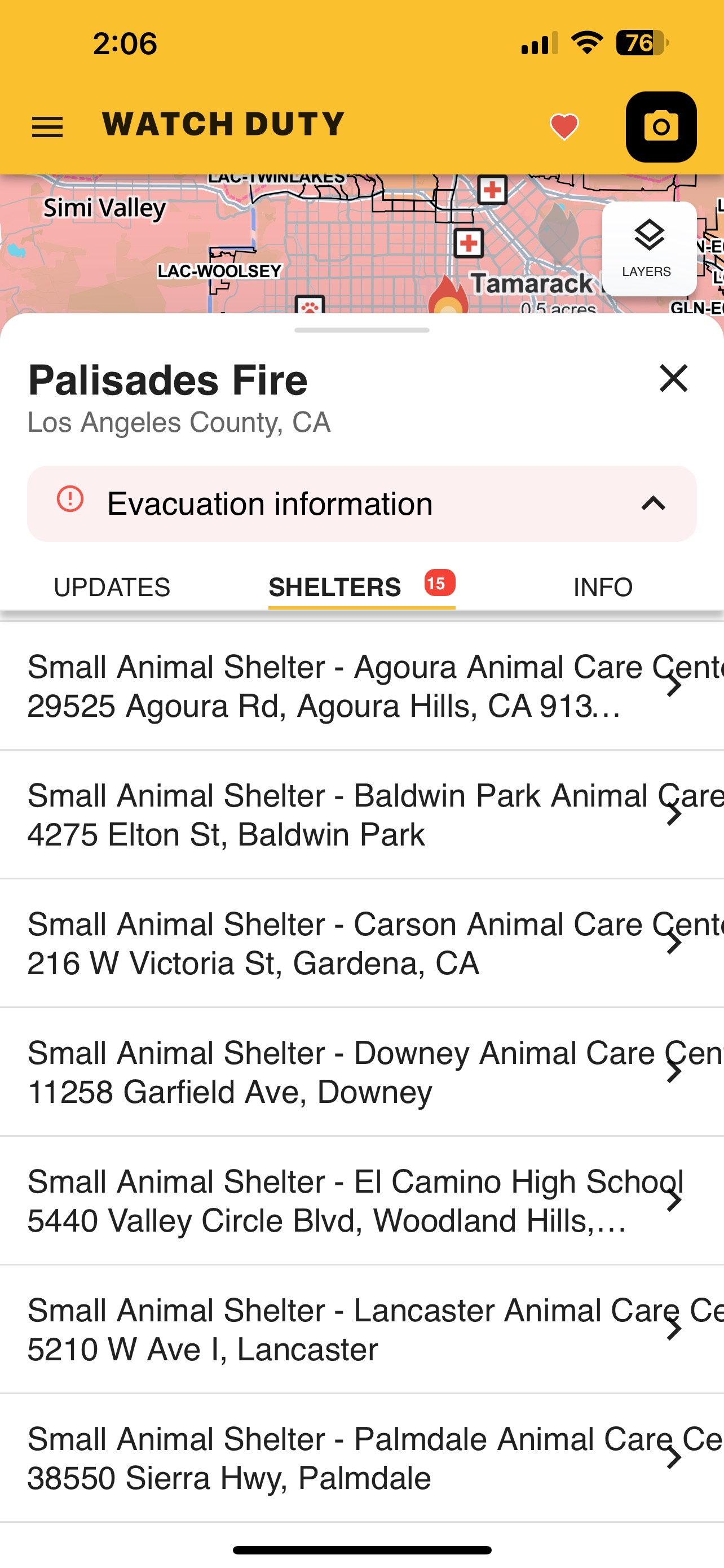 Download the Watch Duty App. It also has real time shelter info for each fire area.